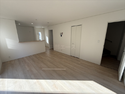 長野市松岡にあります新築戸建住宅です。大容量のウォークインクローゼットがありますので普段使わない物もすっきり収納出来ます。リビング隣接の和室はちょっとした収納スペースとしても使えそうですね。トイレは1階と2階にそれぞれありますので、朝のトイレ渋滞の解消にも繋がりそうですね。