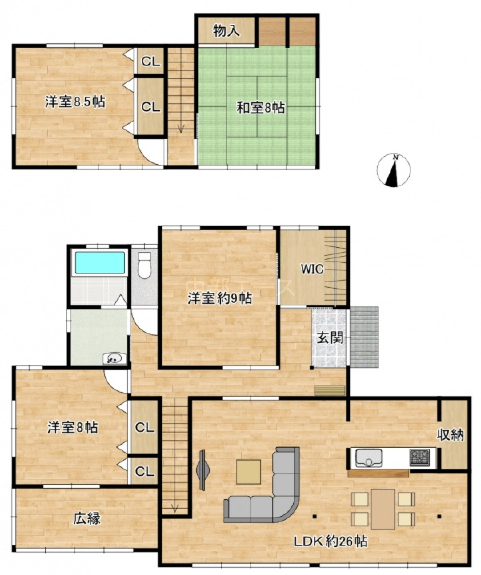 (1階)LDK26、(1階)洋9、(1階)洋8、(2階)洋8.5、(2階)和8 |