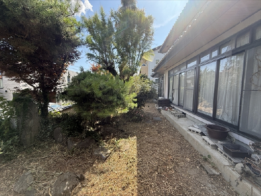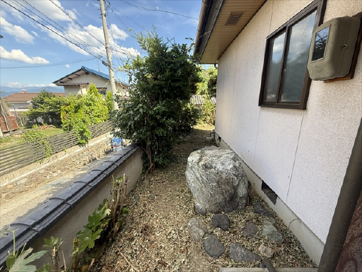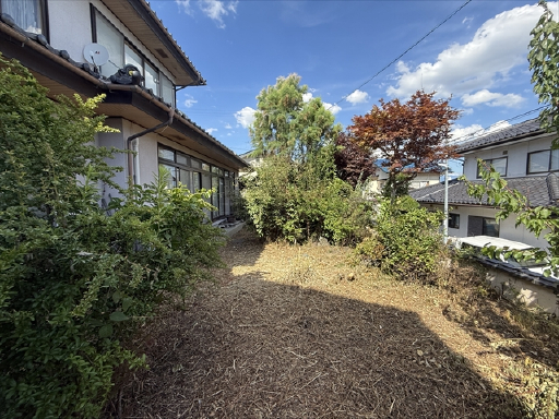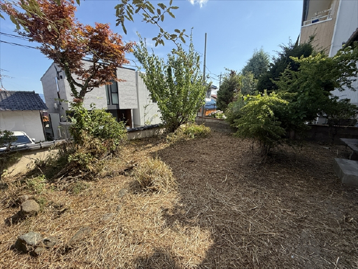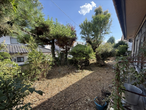 建物の南側にお庭があるのですが、そこが道路から見えない高さのお庭になっていますので、道路からの視線を気にせずお子さんと遊んだり家庭菜園などが出来るかなと思います。