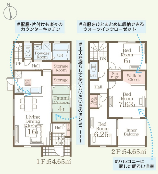 (1階)LDK16、(1階)和4、(2階)洋7.63、(2階)洋6.25、(2階)洋6 |
