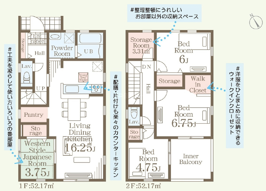 (1階)LDK16.25、(1階)和3.75、(2階)洋6.75、(2階)洋6、(2階)洋4.75 |