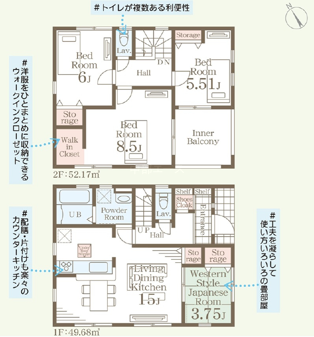 (1階)LDK15、(1階)和3.75、(2階)洋8.5、(2階)洋6、(2階)洋5.51 |