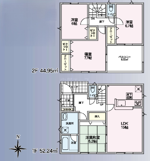 (1階)LDK15、(1階)和5.2、(2階)洋7.7、(2階)洋6.7、(2階)洋6 |