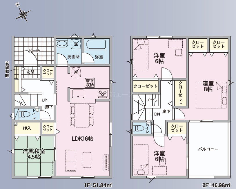 (1階)LDK16、(1階)和4.5、(2階)洋8、(2階)洋6、(2階)洋6 |