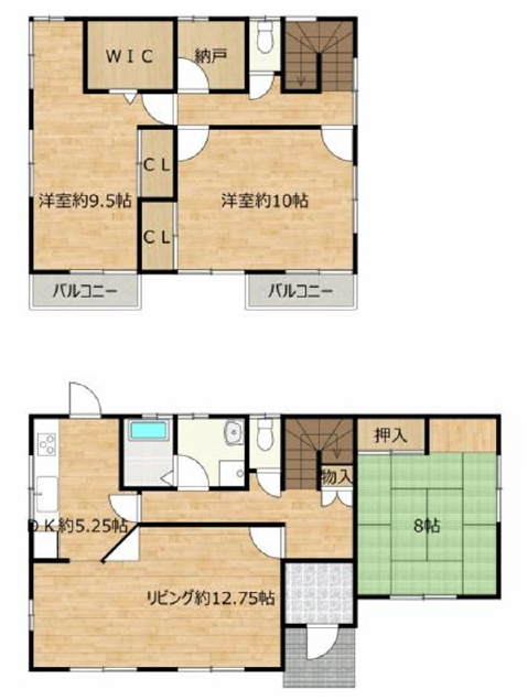(1階)L12.75、(1階)DK5.25、(1階)和8、(2階)洋10、(2階)洋9.5 |
