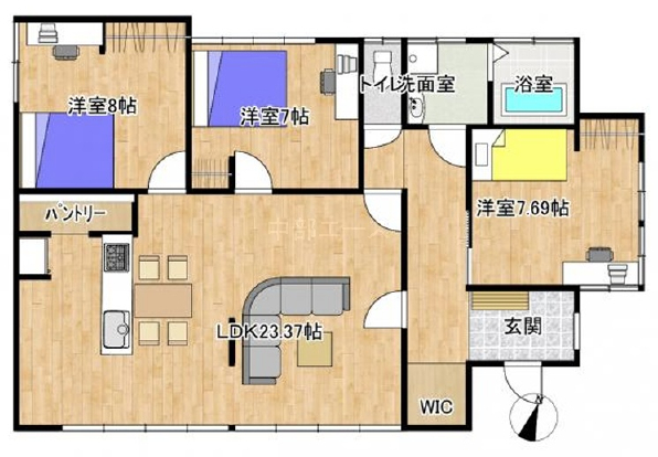 (1階)LDK23.37、(1階)洋8、(1階)洋7.69、(1階)洋7 |