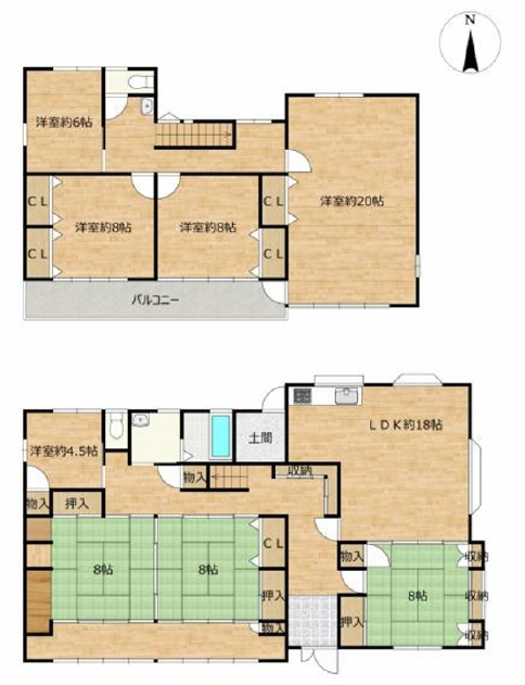 (1階)LDK18、(1階)洋4.5、(1階)和8、(1階)和8、(1階)和8、(2階)洋20、(2階)洋8、(2階)洋8、(2階)洋6 |