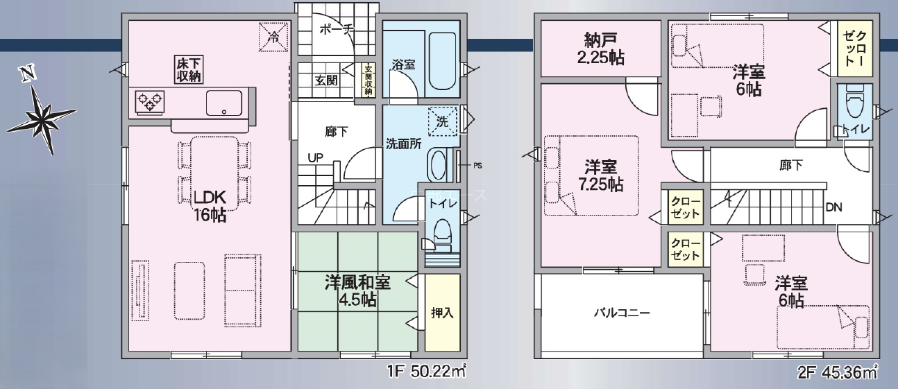 (1階)LDK16、(1階)和4.5、(2階)洋7.25、(2階)洋6、(2階)洋6 |