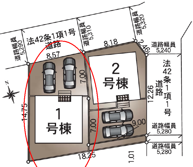 北 5.3m(幅員) 公道 |
